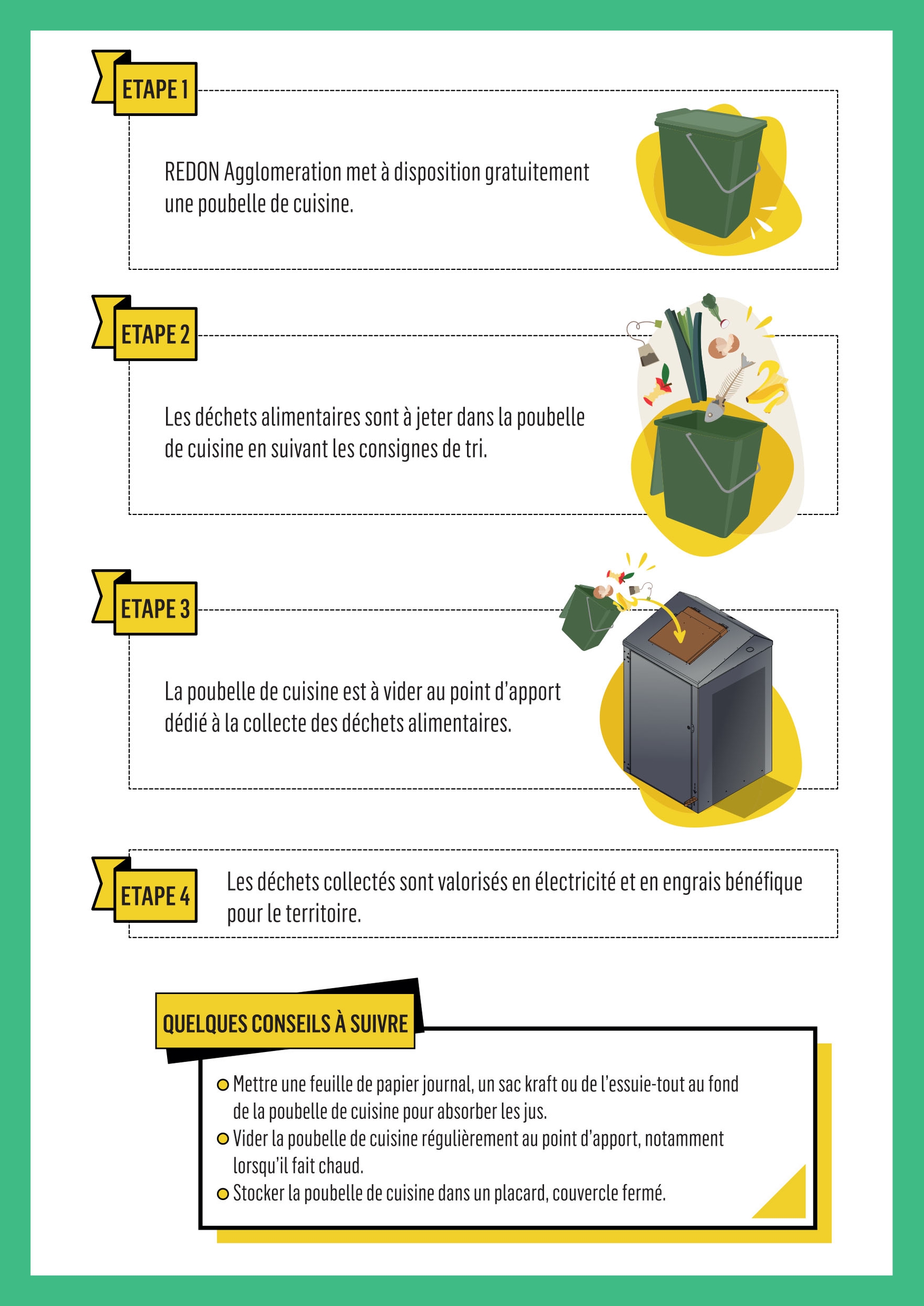 Dans les secteurs concernés, chaque foyer qui le souhaite peut recevoir gratuitement une poubelle de cuisine spécifique, afin de stocker temporairement ses déchets alimentaires. Chacun peut ensuite les déposer dans l'abribac le plus proche de son domicile, selon les consignes de tri.