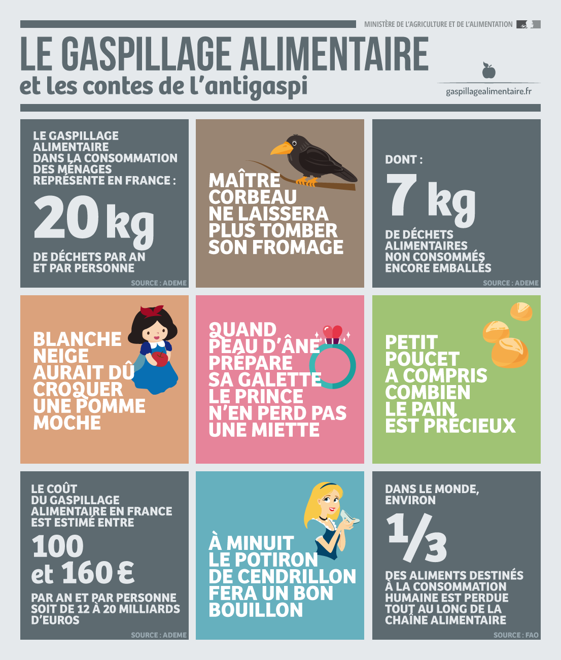 Chaque année le gaspillage alimentaire des ménages en France représente 20 kg par an et par personne, dont 7 kg de déchets alimentaires jetés encore emballés.