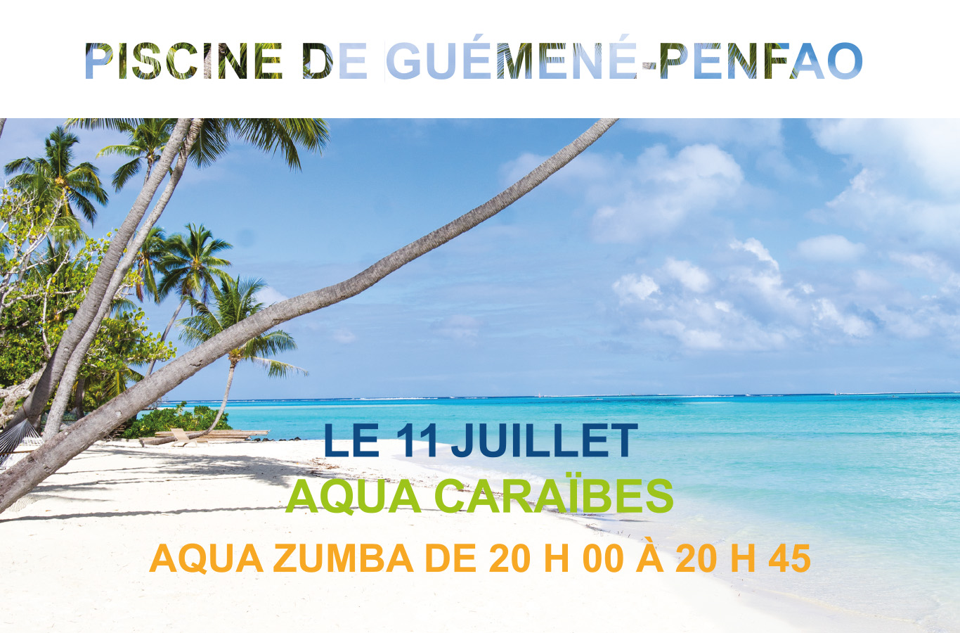 Ambiance tropicale, musique, cocktail, fil rouge, aqua zumba... Sous le signe du soleil et des vacances, la piscine de Guémené-Penfao propose une soirée "Aqua Caraïbes" lundi 11 juillet. A partir de 16 ans, profitez des animations en mode estival !