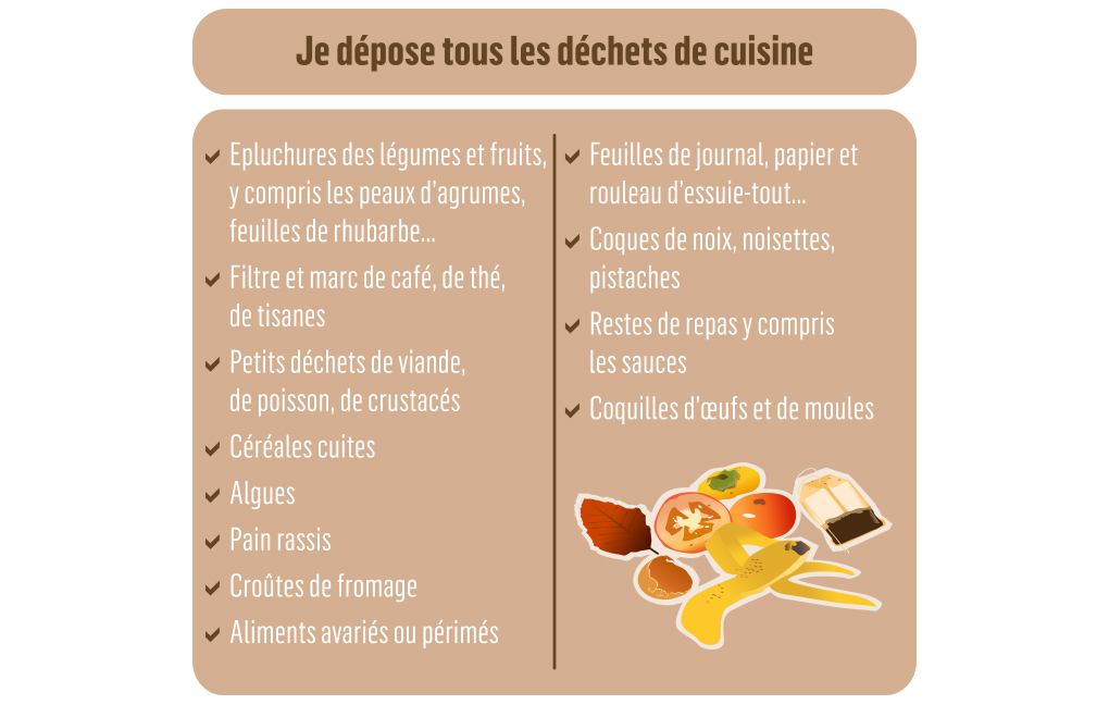 Tous les déchets organiques d'origine végétale et animale se décomposent (certains, plus rapidement que d'autres). L'idéal est de respecter un mélange de matière humide, et de déchets secs :
