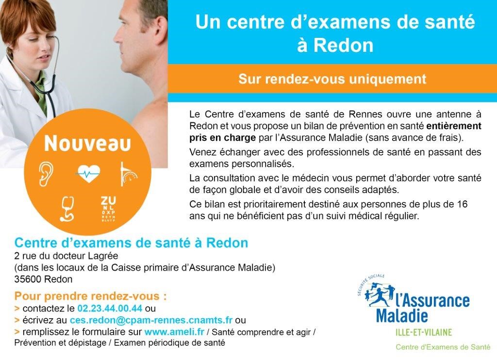 C’est dans le cadre du CLS 1 que la Caisse Primaire d’Assurance Maladie (CPAM) d’Ille-et-Vilaine a ouvert en mars 2018 une antenne du Centre d’examen de santé, à Redon.