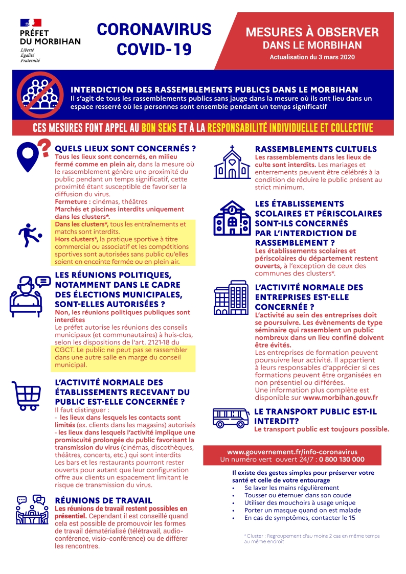 Face à une situation évolutive et une médiatisation importante sur le Covid 19, les questions sont nombreuses. Côté REDON Agglomération, la collectivité suit les mesures des préfectures de Loire-Atlantique, Ille-et-Vilaine et Morbihan dont elle dépend.