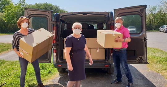Après un premier don de 750 exemplaires en guise de test (distribuées aux communes, Ehpad, déchèteries...), l'entreprise BIC (BJ75) de Redon a souhaité produire et offrir 10 000 visières supplémentaires, destinées :