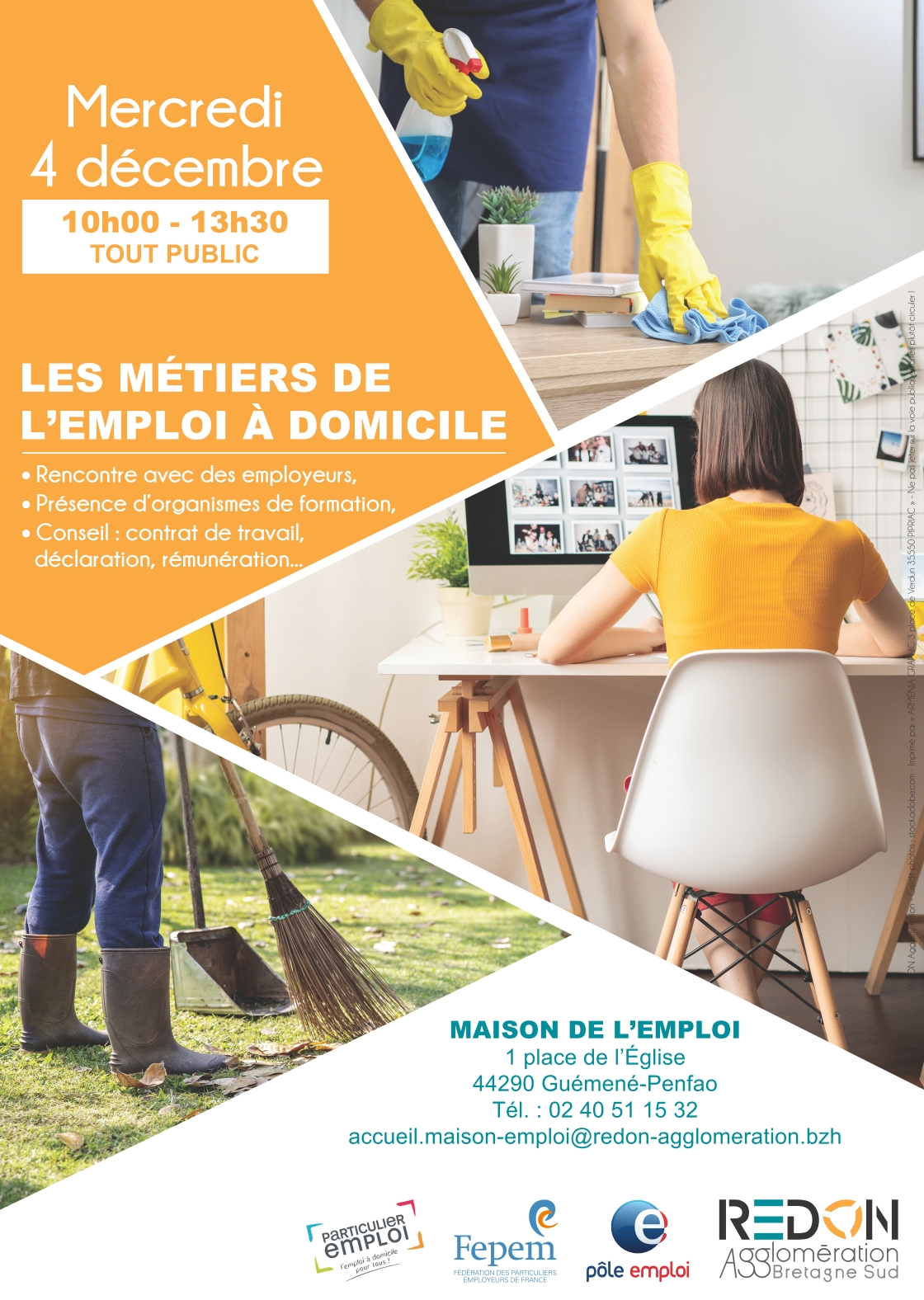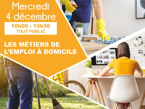 En recherche d'emploi, de complément d'activité et revenu, ou en réflexion sur un changement professionnel, vous vous intéressez à l'emploi à domicile ? C'est l'occasion d'obtenir des réponses à vos interrogations, découvrir des opportunités de travail et de formation, en savoir plus sur les démarches possibles, rencontrer des recruteurs et partenaires...