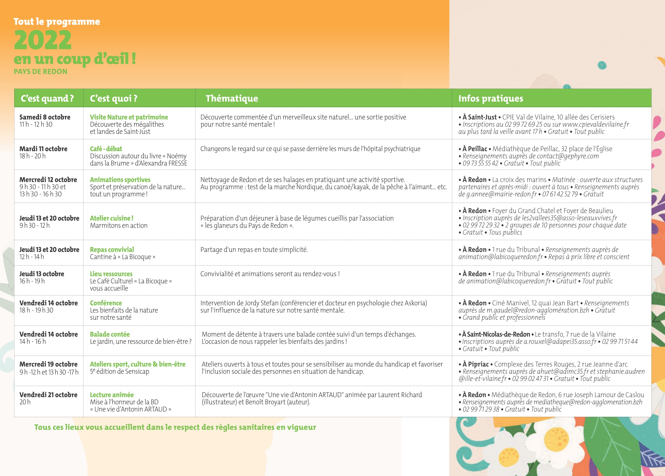 Balade contée, café-débat, animations sportives, lecture animée, visite nature et patrimoine... Le Collectif Santé Mentale du Pays de Redon* propose un programme d'animations, rappelant l’importance d’agir sur l’environnement, pour la santé mentale de tous.