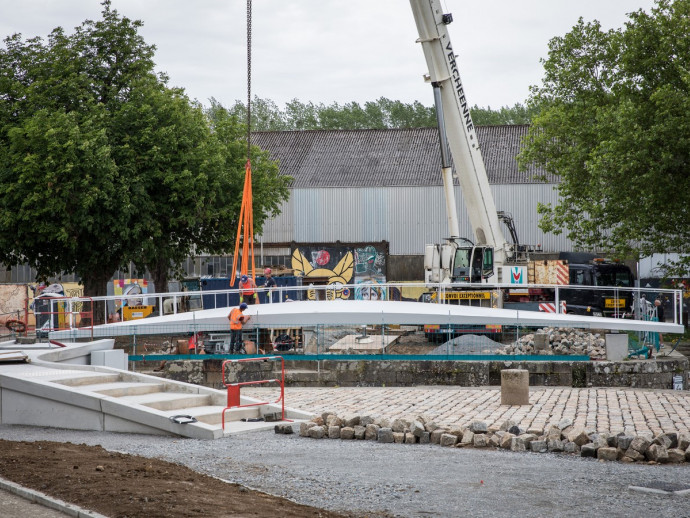 Les abords de la passerelle marquent la première étape d'aménagement opérationnel des espaces publics de la presqu'île du port.