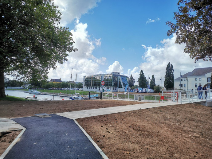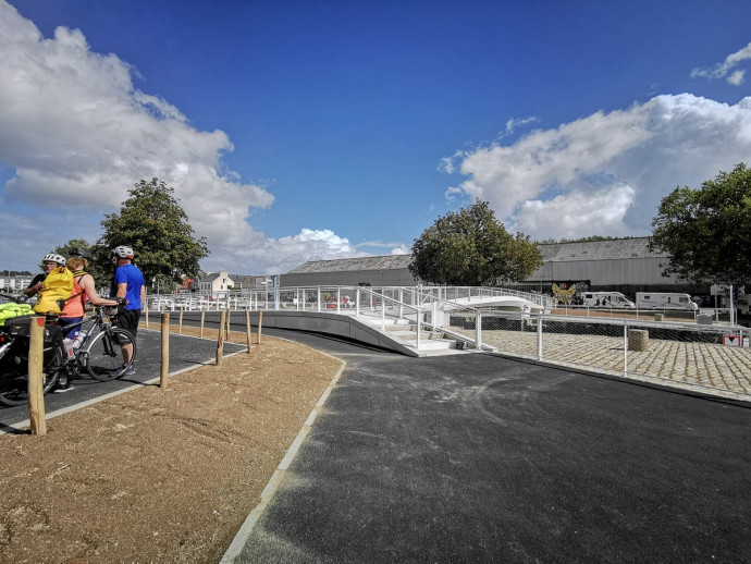 La passerelle permet de connecter facilement les espaces de stationnement de la route de Vannes, le quartier du Châtelet et la capitainerie, au quartier du port, au cinéma, et à l’ensemble des aménagements qui seront réalisés dans la grande nef Garnier (espaces événementiels, restauration…).
