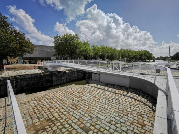 L'équipement, qui permet désormais de relier quai Jean Bart et Quai Surcouf à Redon, se situe sur le chenal de sortie vers la Vilaine, à l'emplacement d’un ancien dispositif de régulation du bassin à flot.