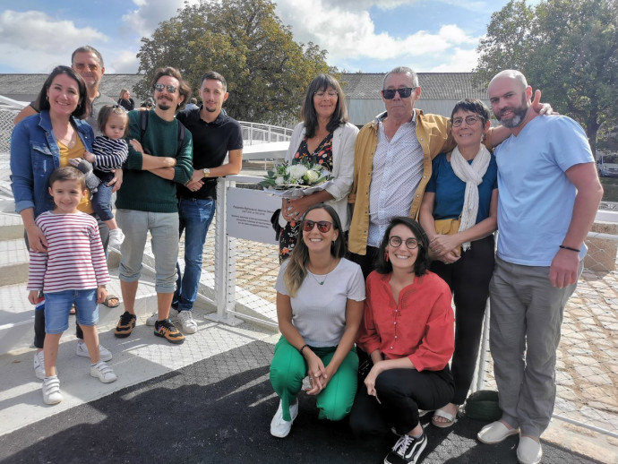 Le nom de la passerelle est une façon de rendre hommage au monde des mariniers et plus particulièrement à un couple de "nomades de la mer", figures locales redonnaises : Alphonse et Jeanine Debray, mariniers de l’Océan.