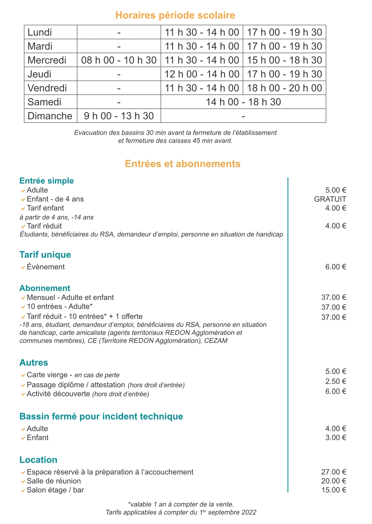 La piscine accueille sur des créneaux réservés :