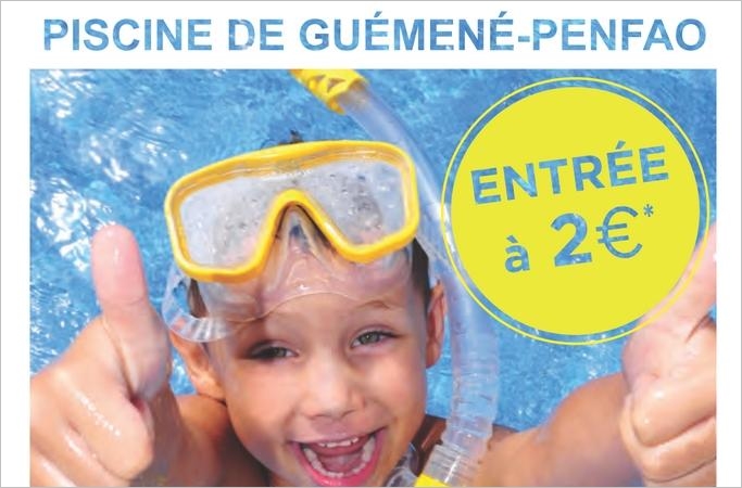 Du 23 décembre au 05 janvier, profitez d'un tarif unique à 2€ ! L'occasion de profiter des plaisirs de l'eau, et des animations de la piscine de Guémené-Penfao. Tarif promotionnel pour enfants et adultes.
