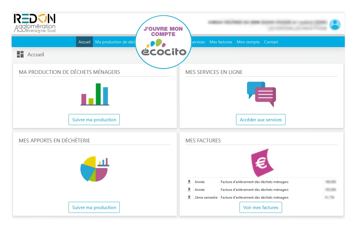 Chaque abonné est invité à utiliser le portail Ecocito, qui permet de retrouver ses factures, suivre le nombre de ramassage des bacs, sa propre production de déchets, ses visites en déchèteries, échanger avec le service...