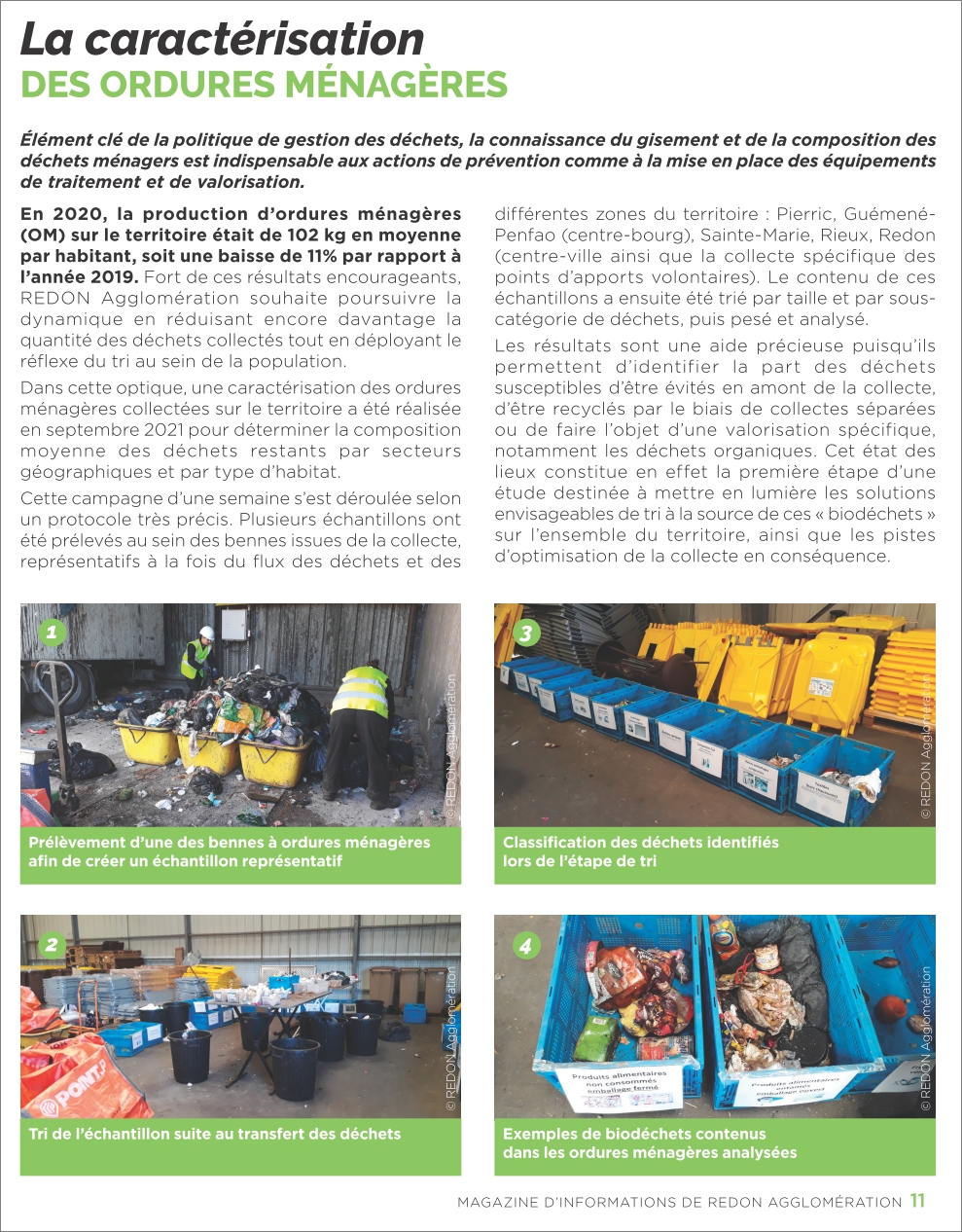 - En 2021, une caractérisation des déchets ménagers a eu lieu pour déterminer la composition moyenne des déchets, par secteur géographique et par type d'habitat.